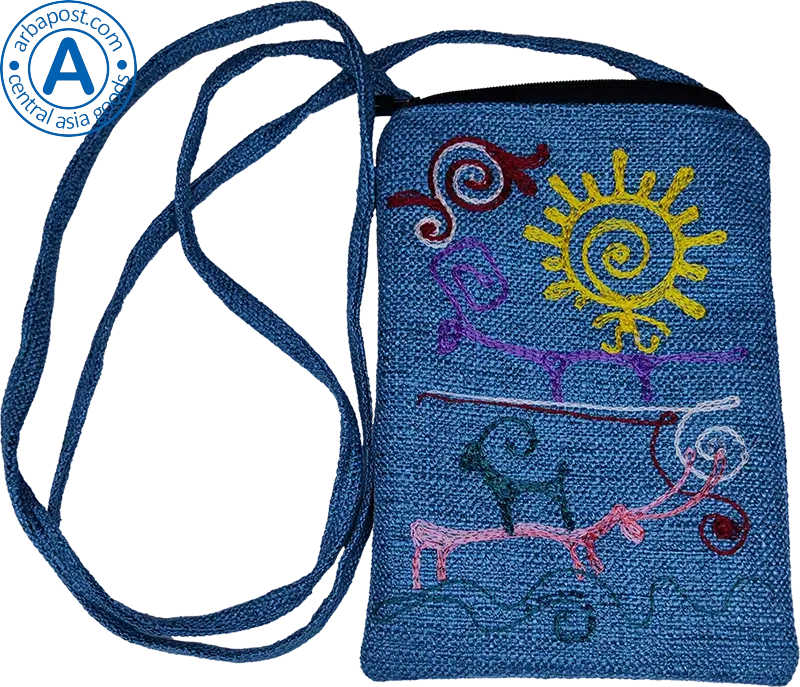 Altyn Adam bag made of fabric, blue with sun and rams