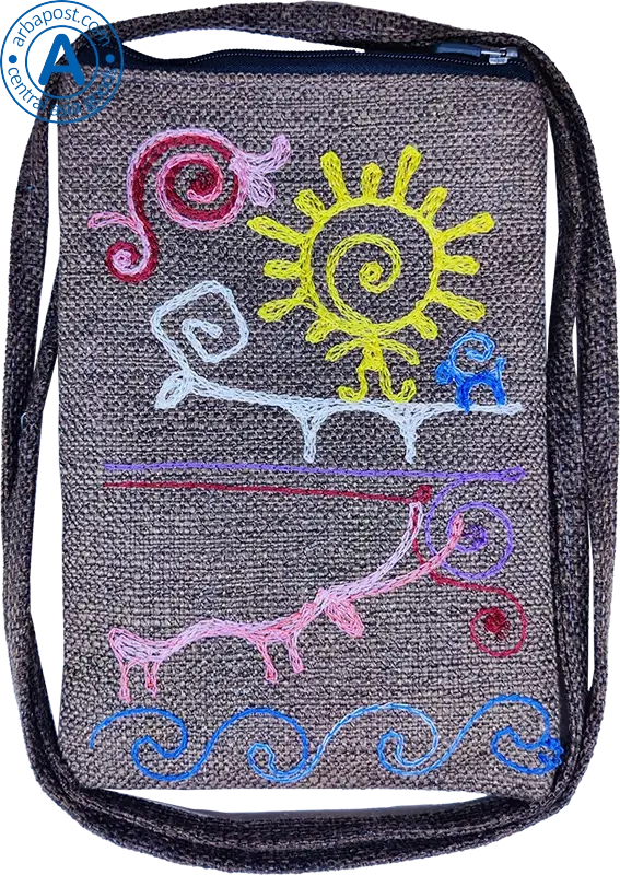 Altyn Adam bag made of fabric, grey with sun and rams