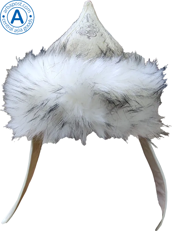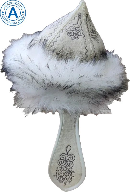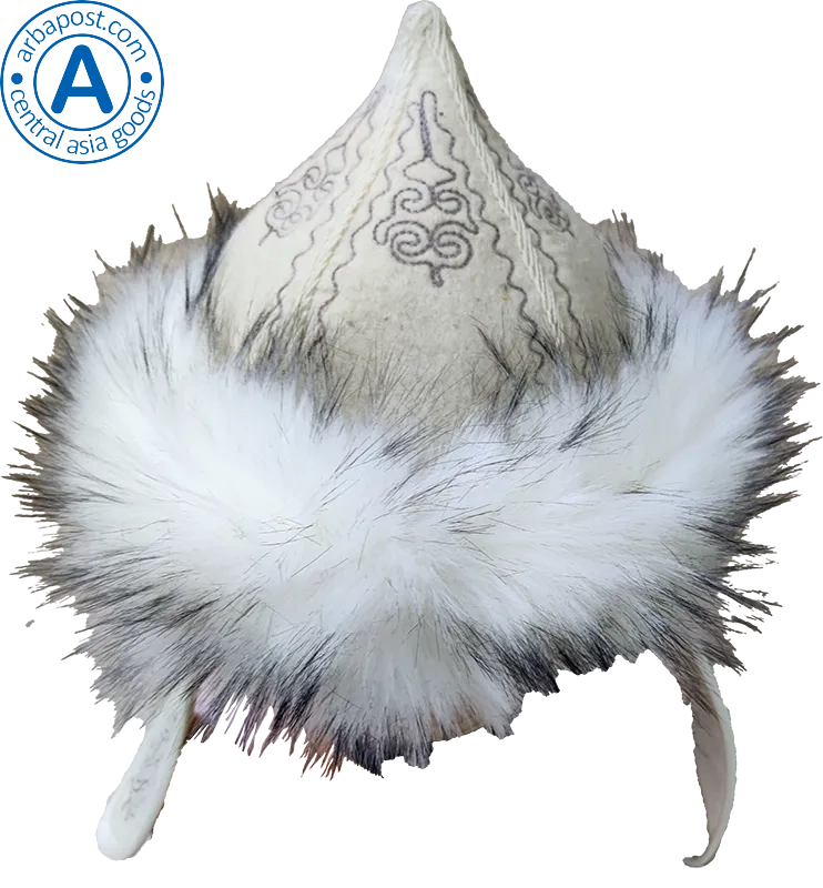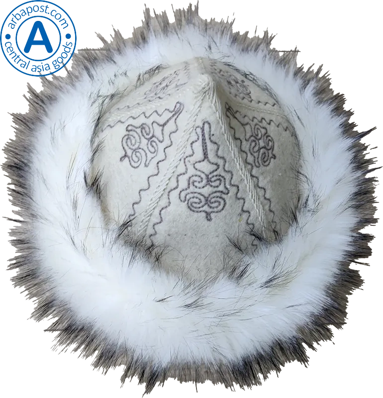 Altyn Adam cap made of felt and fur, white with grey pattern