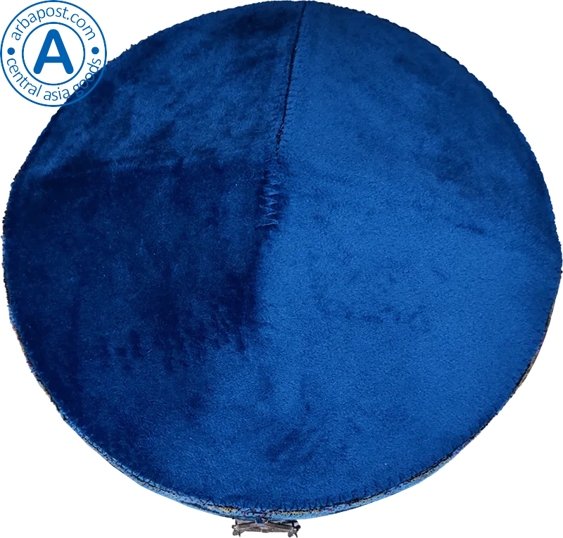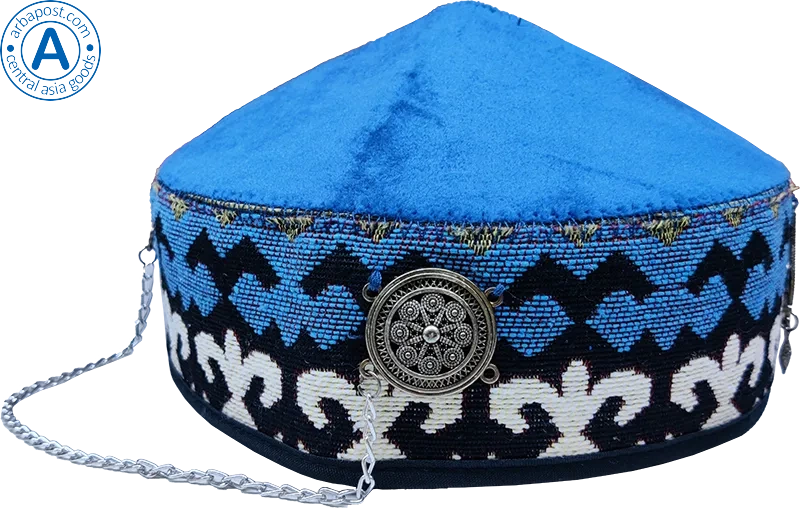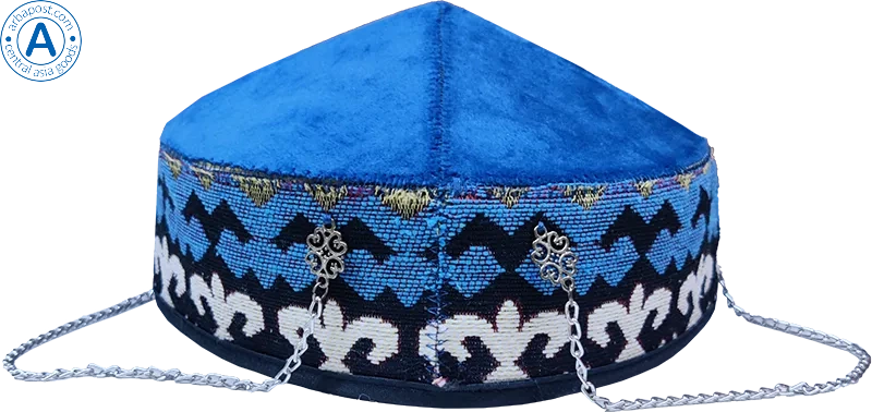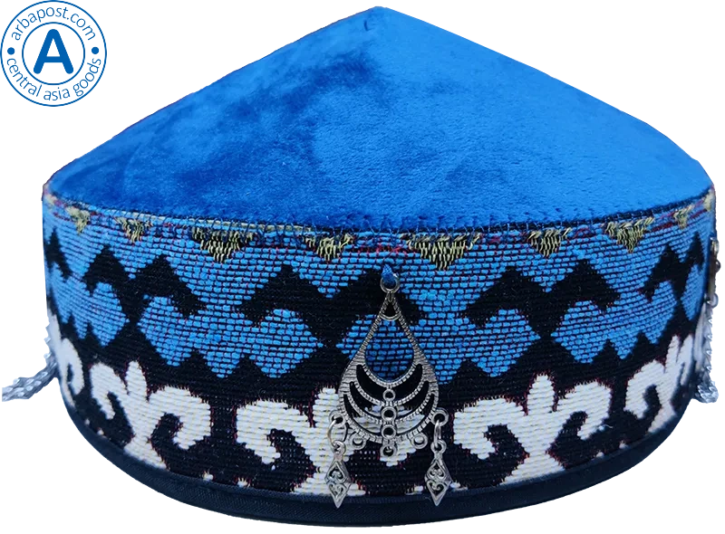 Altyn Adam cap made of velvet, short, blue with round metal pattern