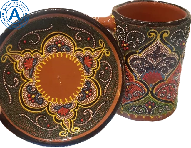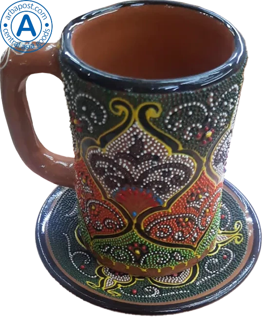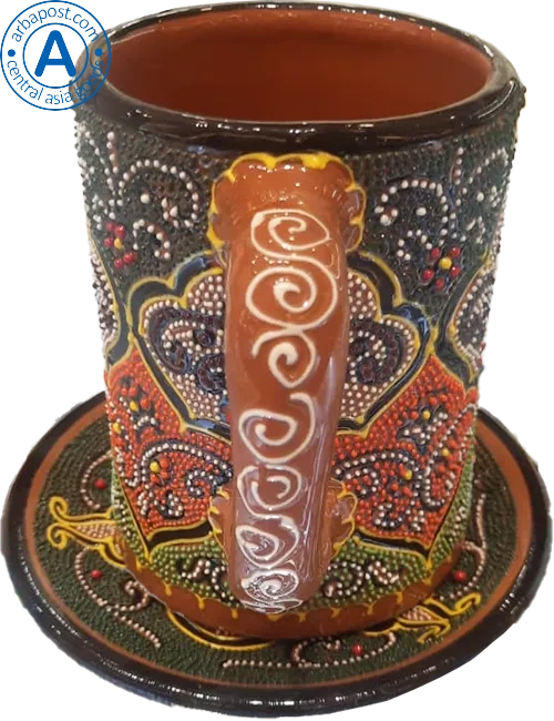 Altyn Adam mug and saucer made of ceramic, green-red-brown