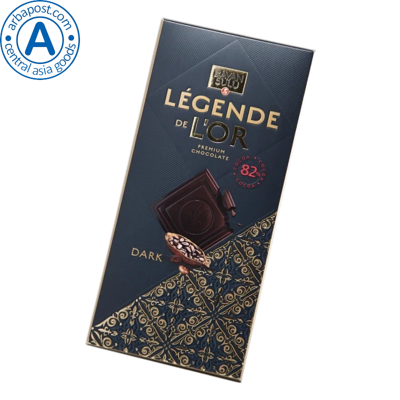 This is Kazakhstan premium dark chocolate with a cocoa content of at least 82%.
