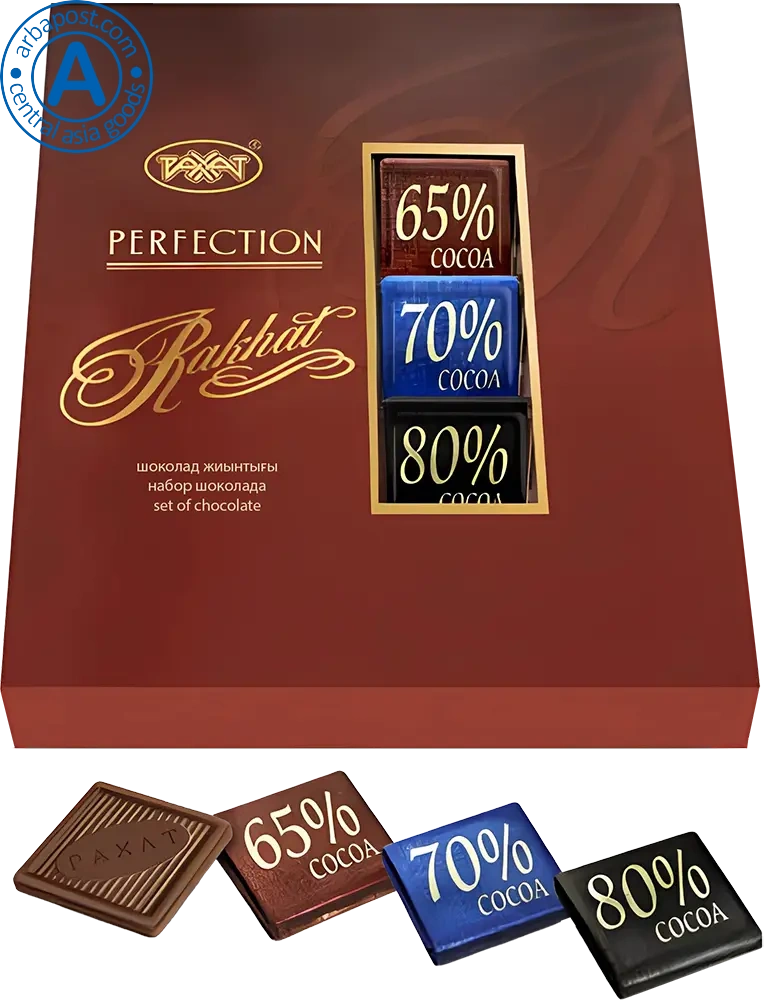 This set is a mix of Kazakhstan dark and milk chocolate in stylish packaging, which contains chocolate bars with the following chocolate content: