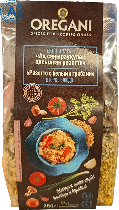 This is Kazakhstan risotto with porcini mushrooms, produced from natural components on high-quality equipment in accordance with international standards and our traditions