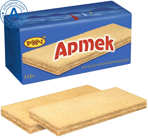 These Kazakhstan waffles have three layers of wafer sheets and two layers of filling with the addition of dairy products and cocoa powder, with vanilla flavor.