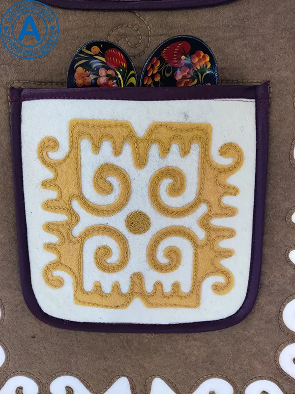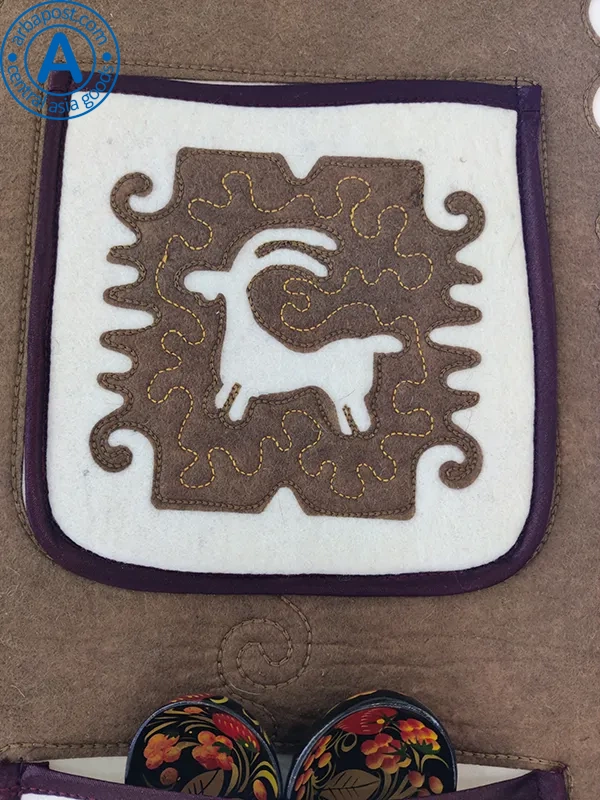 Altyn Adam picture made of felt, double, white ram-yellow pattern