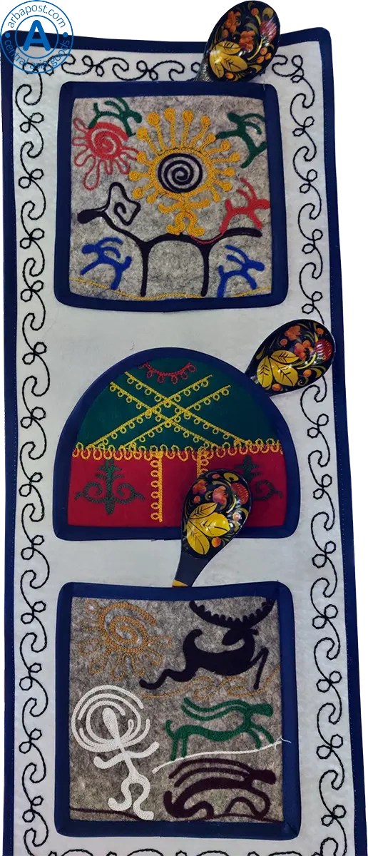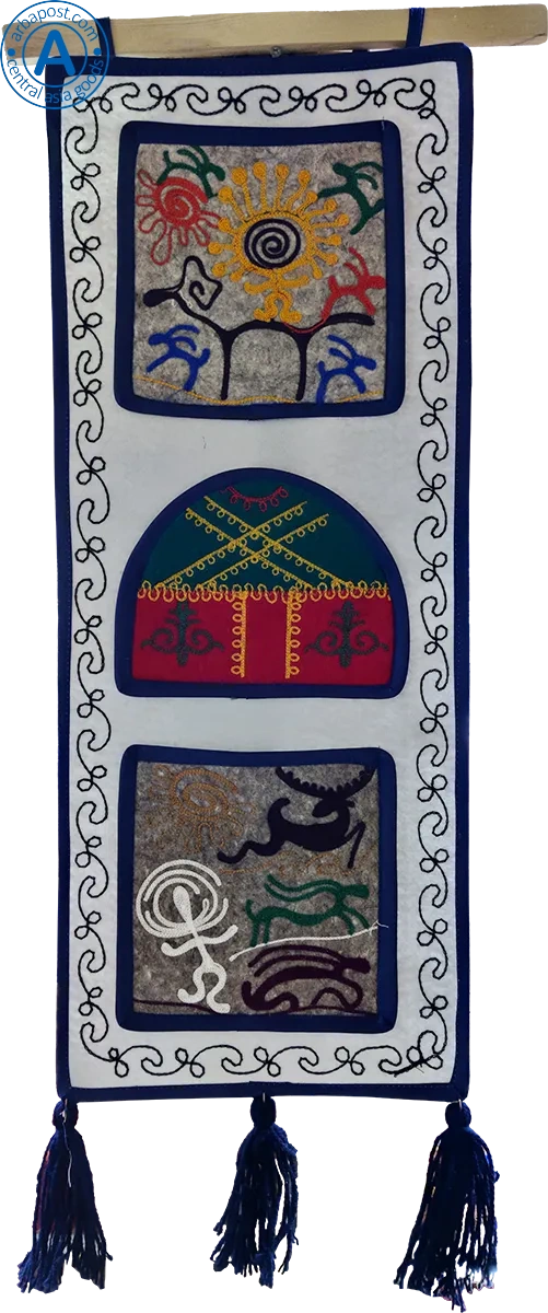 Altyn Adam picture made of felt, triple, green yurt-sun-rams