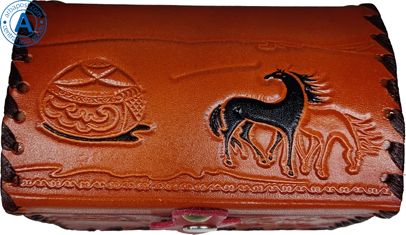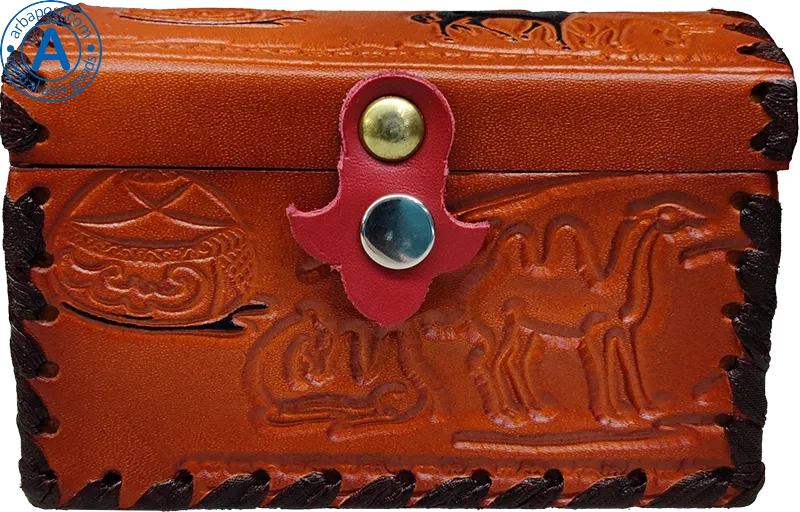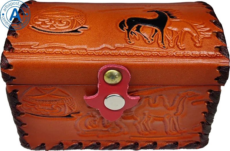 Altyn Adam storage box made of leather, rectangular, brown, small