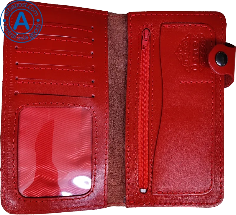 Ornek wallet made of leather, red, clasp outside