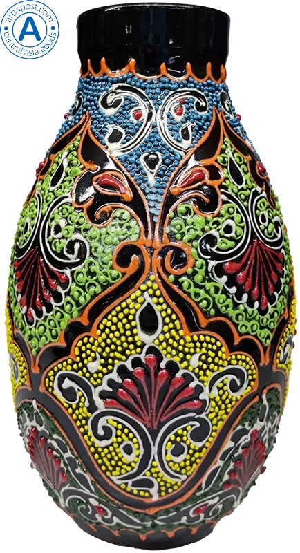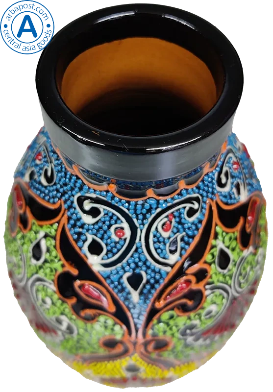 Altyn Adam jug made of ceramic, red-blue-yellow