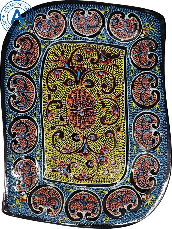 Altyn Adam plate made of ceramic, rectangular, blue-yellow