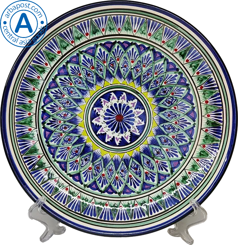 Altyn Adam plate made of ceramic, round, green-yellow, large