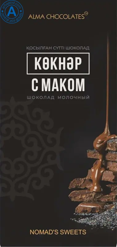 It’s Kazakhstan dark chocolate with poppy seeds, produced from natural components on high-quality equipment in accordance with international standards and our traditions