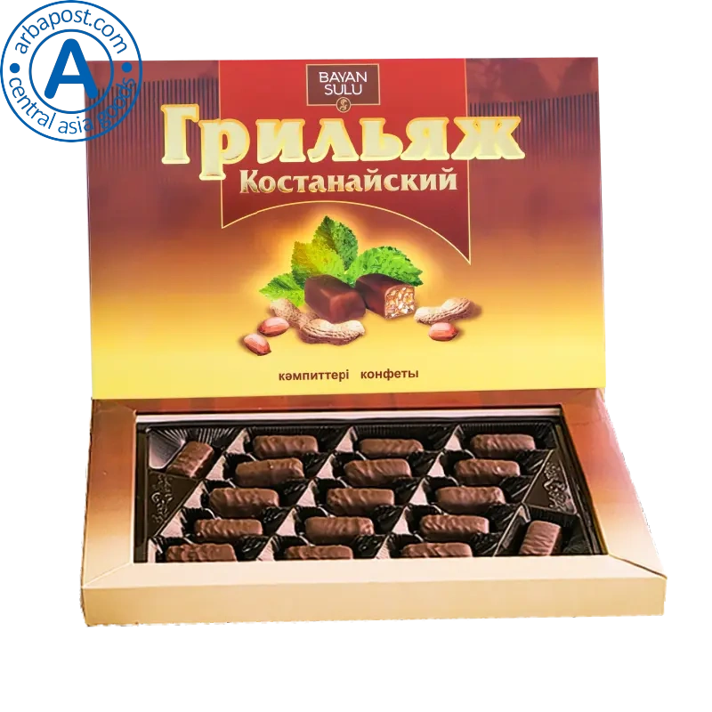 This is Kazakhstan rectangular-shaped chocolate candies with orange-flavored grilled mass.