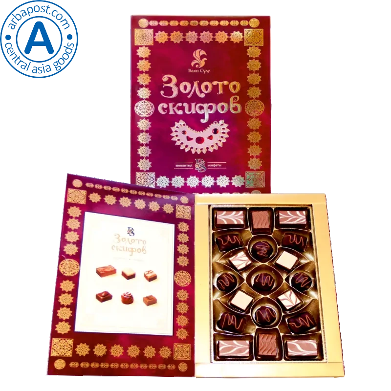 5. square-shaped candies, covered with chocolate glaze, with chocolate cream filling between two layers of marzipan;
