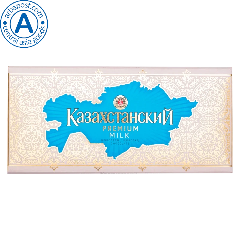 This is Kazakhstan delicate milk chocolate with vanilla aroma. The milk content is 26%. The total content of cocoa products is 32.5%.