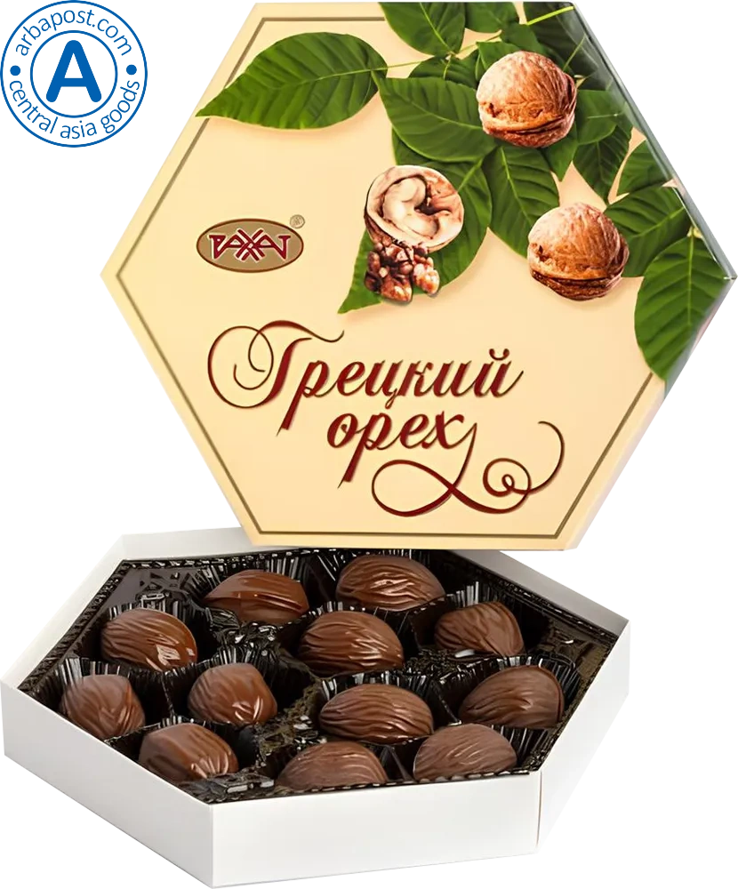 These are Kazakhstan chocolate candies with cream filling and crushed nuts