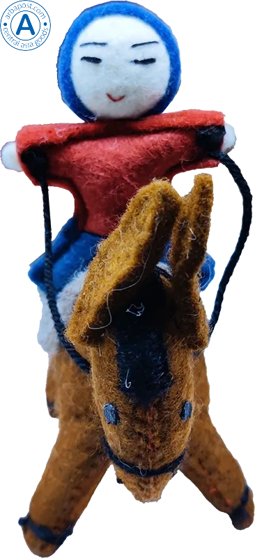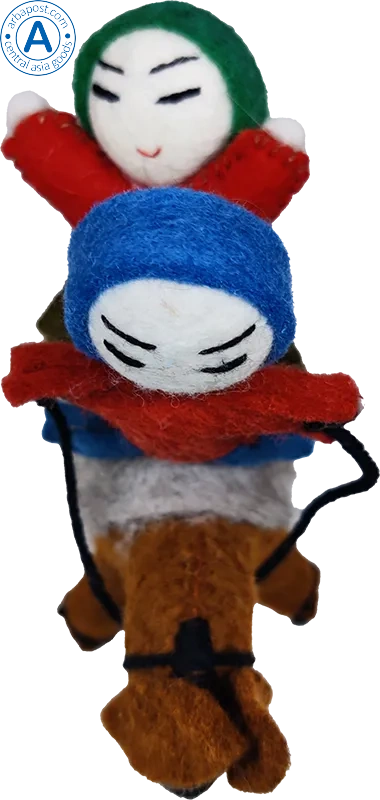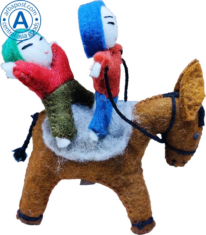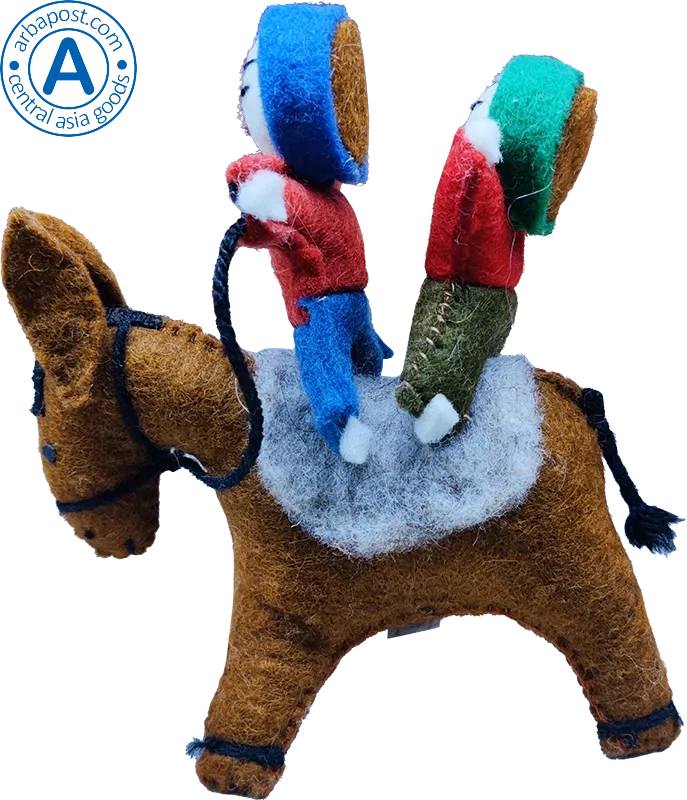 Zhibek Zholy donkey with humans made of felt, brown